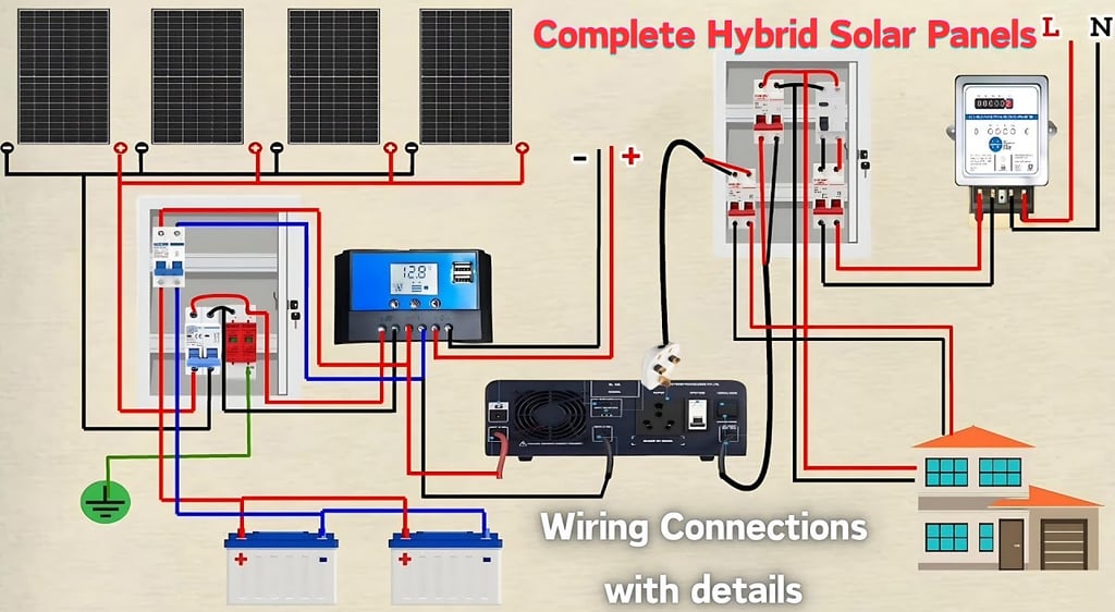A hybrid solar system is an advanced energy solution that integrates solar panels, a battery storage bank, and a connection to the public utility grid. It functions as a "best of both worlds" middle ground between standard grid-tied systems (which lack backup) and off-grid systems (which are completely independent).